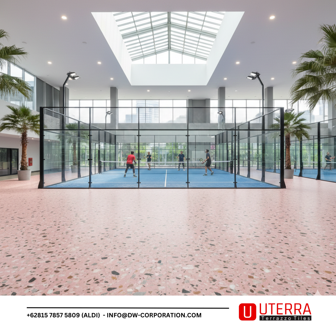 Tren olahraga padel semakin berkembang pesat di Indonesia, termasuk di kawasan Tangerang yang dikenal sebagai salah satu pusat gaya hidup modern di Jabodetabek. Tidak hanya menghadirkan fasilitas bermain yang nyaman, kini banyak pengelola lapangan padel juga mulai memperhatikan aspek desain interior dan estetika ruang. Salah satu pendekatan yang menarik perhatian adalah penggunaan teraso lantai sebagai elemen pelengkap dekorasi dengan motif Pink Coral yang unik dan berkarakter.