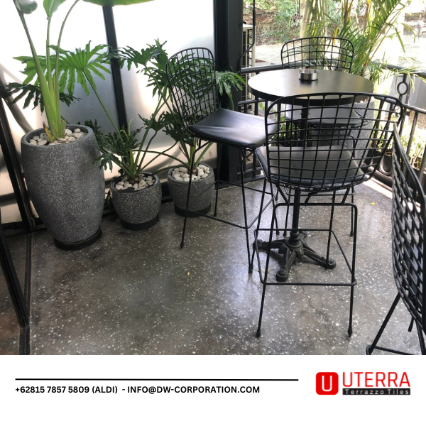 Lantai teraso mampu menahan beban lalu lintas pengunjung, pergerakan kursi dan meja, hingga aktivitas operasional kafe tanpa mudah mengalami kerusakan. Permukaannya yang padat juga relatif mudah dibersihkan, sehingga membantu menjaga tampilan lantai tetap rapi dan menarik dalam jangka waktu yang lama.