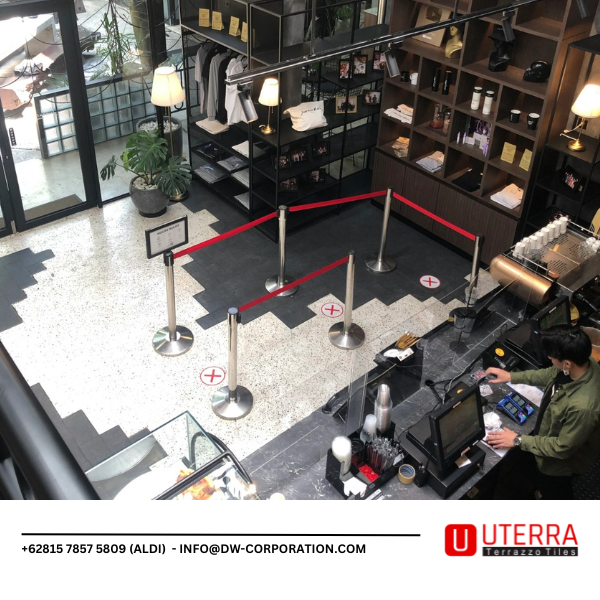 Keunggulan inilah yang membuat ubin teraso menjadi pilihan tepat untuk berbagai area dalam kafe, mulai dari area duduk, area kasir, hingga area sirkulasi utama. Dengan perencanaan desain yang tepat, lantai teraso dapat menjadi elemen yang memperkuat karakter interior sekaligus meningkatkan kenyamanan pengunjung.