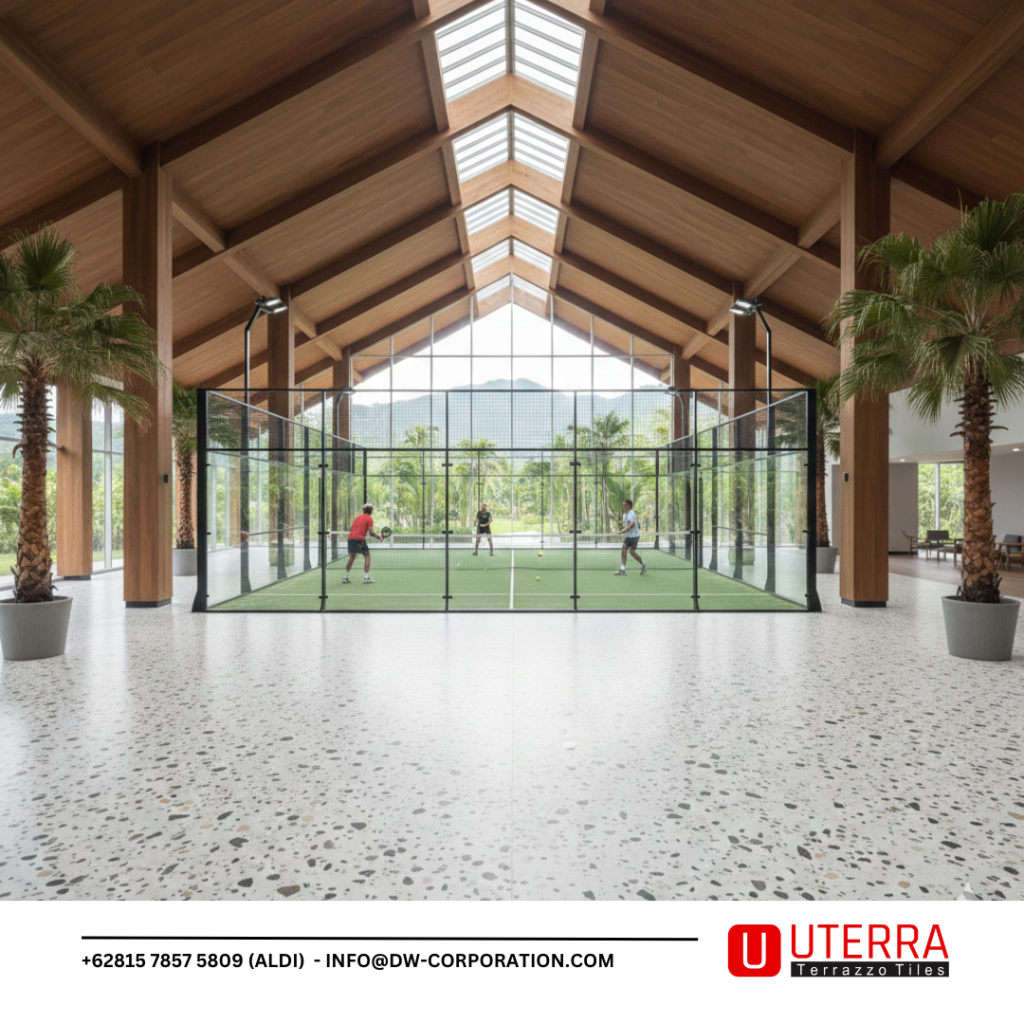 Bagi Anda yang sedang merencanakan pembangunan lapangan padel, fasilitas olahraga, area komersial, maupun hunian dengan konsep modern dan premium, terrazzo bisa menjadi pilihan material yang tepat. Uterra menghadirkan beragam pilihan motif terrazzo, termasuk Grey Classic 01, dengan kualitas terbaik dan tampilan yang elegan. Konsultasikan kebutuhan proyek Anda hubungi marketing team kami melalui WhatsApp : +62 815-7857-5809 (Aldi) atau Email info@dw-corporation.com. Karena ruang yang baik, selalu dimulai dari material yang tepat.